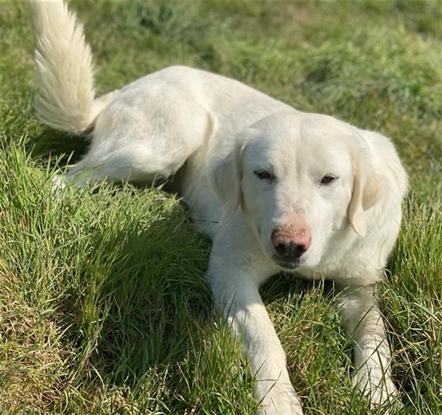 Queenie ist eine ganz bezaubernde und goldige Hündin, die mit ihrem beige-weißen Fell und treuen Hundeblick schnell einen Platz im Herzen findet. Die hübsche Hundemama besitzt ein glattes Fellkleid mit einer etwas wuscheligeren Rute. Queenie sieht nicht nur goldig aus, sondern besticht auch mit ihrem tollen Charakter. Die liebe Hündin zeigt sich freundlich im Umgang und auch gegenüber anderen Hunden verträglich. Queenie ist im Besten Hundealter und möchte die schönen Seiten des Hundelebens noch entdecken. In ihrem neuen Zuhause sollte ein sicher eingezäunter Garten vorhanden sein. Wenn Queenie Ihr Herzenshund werden soll, freuen wir uns auf Ihre Anfrage.