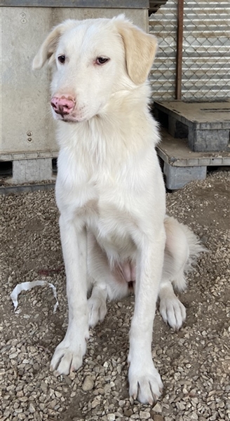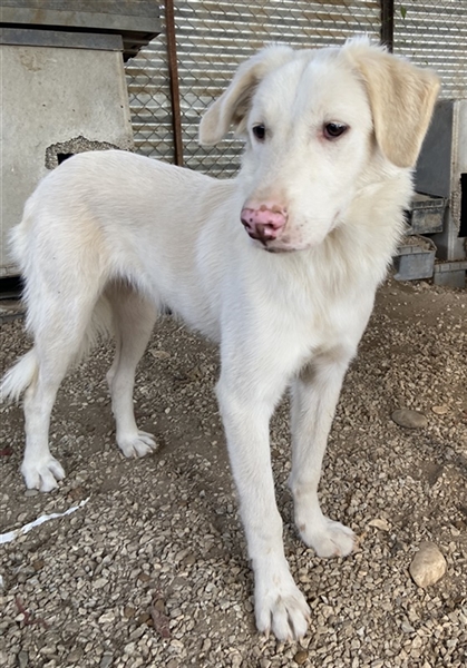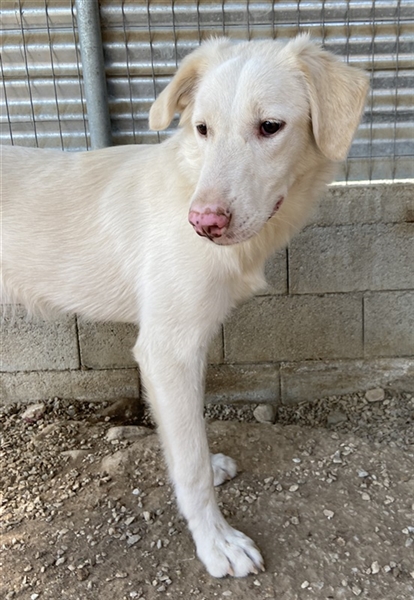 Die weiße Zendaya hat sich bei uns von Anfang an den Spitznamen „Schäfchen“ ergattert. Aus dem zerzausten, süßen Welpen ist eine bildschöne, zarte Hündin geworden. Da dies natürlich nur von nebensächlicher Bedeutung ist, hier noch Zendayas wichtigste Charaktereigenschaften: Freundlichkeit, Verträglichkeit und Liebenswürdigkeit. Uns ist bewusst, dass man Zendaya am liebsten einfach nur knuddeln möchte, jedoch sollte man sie hierbei erst einmal nicht überrumpeln. Sie ist eben Menschen gegenüber auch noch etwas ängstlich und skeptisch, da sie diese einfach nicht einschätzen kann. Kein Wunder, bei den Erfahrungen die sie womöglich machen musste. Mit dem richtigen, einfühlsamen Händchen ihrer neuen Besitzer sollte Zendaya diese Zurückhaltung sicher schnell in den Griff kriegen. Zu ihrem Glück ist Zendaya noch jung und hat daher gute Voraussetzungen auf ein hoffentlich zufriedenes Leben. Hierfür brauchen wir jedoch Ihre Hilfe in Form von Interesse an ihr. Könnte Zendaya Ihr Hund fürs Leben sein? Dann scheuen Sie sich bitte nicht, uns zu kontaktieren, um alles Weitere gerne persönlich durchzugehen.