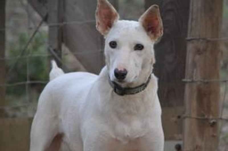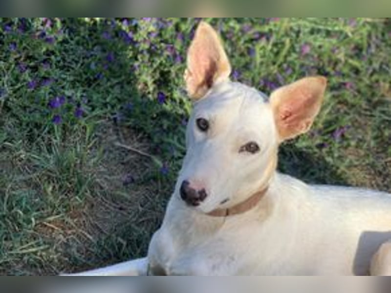 Lagune ist auf der portugiesischen Azoreninsel Sao Miguel geboren, auf der unsere Tochter/Schwester lebt. Bei einem Besuch dort im Oktober 2022 lief Lagune ganz verzweifelt in den Bergen jedem Auto hinterher. Er hatte wohl die Hoffnung mit genommen zu werden, was wir nach einer kurzen Annäherungsphase auch getan haben. Wir konnten Lagune nach einigem organisatorischen Aufwand noch im Oktober 2022 zu uns aufs Festland nachholen. Er war damals von der ersten Minute an sehr glücklich bei uns auf dem Hof in der Natur, wo er ein großes Gebiet hat, in dem er sich frei bewegen kann. Zu der Zeit war Lagune noch recht unruhig und brachte unser Hunderudel mit einigen älteren Hunden ein wenig durcheinander. Inzwischen ist der weiße Rüde älter und reifer geworden und hat viele Erfahrungen bei uns sammeln können. Besonders auffällig ist seine große Liebe zu dem kleinen Mädchen, das seit März 2022 mit bei uns auf dem Hof lebt. Auch Welpen gegenüber ist Lagune sehr freundlich und rücksichtsvoll. Mit den anderen erwachsenen Hunden versteht er sich gut, aber wir merken, dass es ihm eigentlich zu viel ist mit der ständig wechselnden Hundegruppe. Er zieht sich oft in seine Box zurück, in der er auch jede Nacht sehr lieb schläft. Insgesamt ist Lagune sehr viel ruhiger geworden, auch wenn er weiterhin typische Podengo-Eigenschaften zeigt. So ist er in Haus und Hof anhänglich und sucht viel Kontakt, während er beim Spaziergang manchmal etwas schwieriger zu bändigen ist. Lagune darf teilweise frei laufen, bei kurzen Spaziergängen neigt er aber dazu, noch einen kleinen Gang alleine hinten dran zu hängen. Wir haben Lagune natürlich inzwischen nach der langen Zeit des Zusammenlebens sehr in unser Herz geschlossen, aber wir möchten ihm gerne andere Möglichkeiten bieten. Hier bei uns ist es eigentlich zu unruhig für den sensiblen Hund, der so familienfreundlich ist und Beständigkeit sehr zu schätzen weiß.