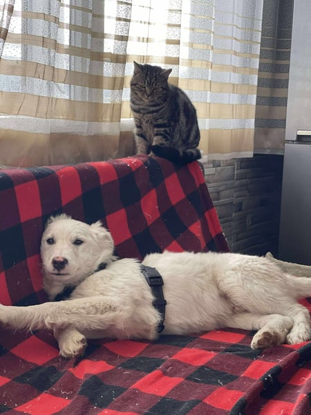 Auch durfte der Hübsche bereits die Katzen von Monika kennenlernen und geht sehr freundlich mit ihnen um.