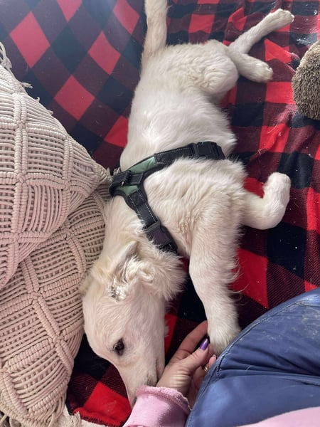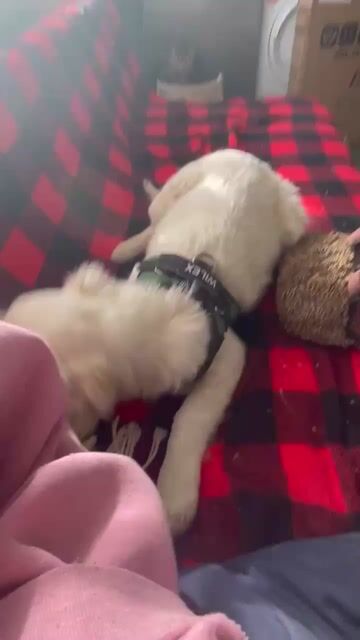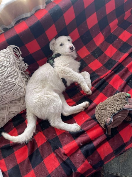 Zack spielt sehr gerne mit seiner Schwester Sadie und auch mit den anderen Hunden unserer Tierschützerin. Er liebt es sehr, bei den Hunden zu sein.