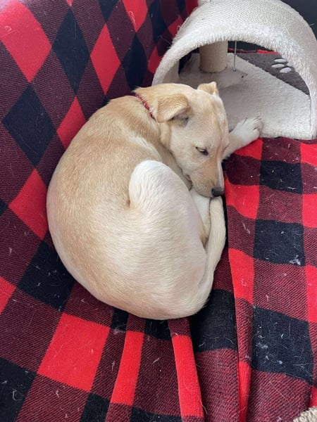 Ihre Mama ist ein Straßenhund und hat sich einen sicheren Unterschlupf gesucht, um ihre Babys auf die Welt zu bringen.