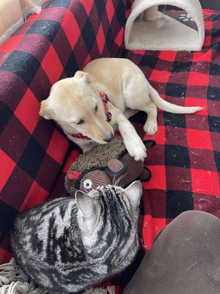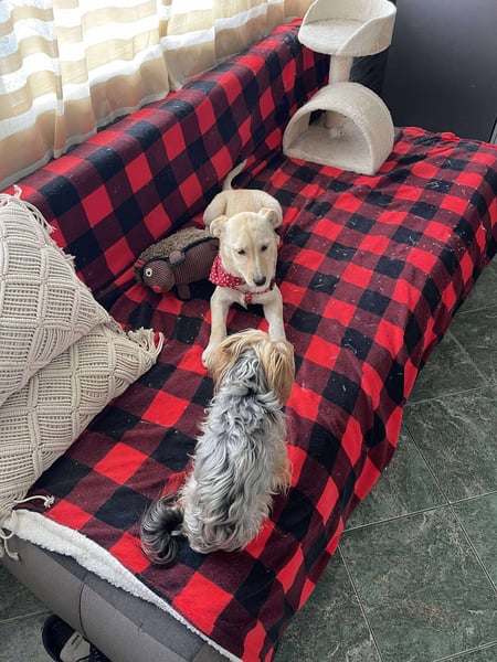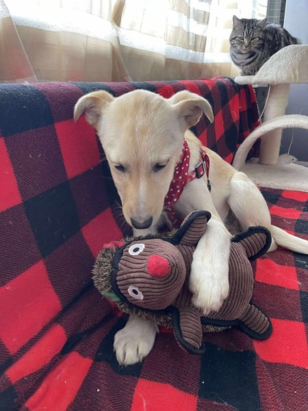 Melissa spielt sehr gerne mit ihren Geschwistern und auch mit den anderen Hunden unserer Tierschützerin. Sie liebt es sehr, bei den Hunden zu sein.