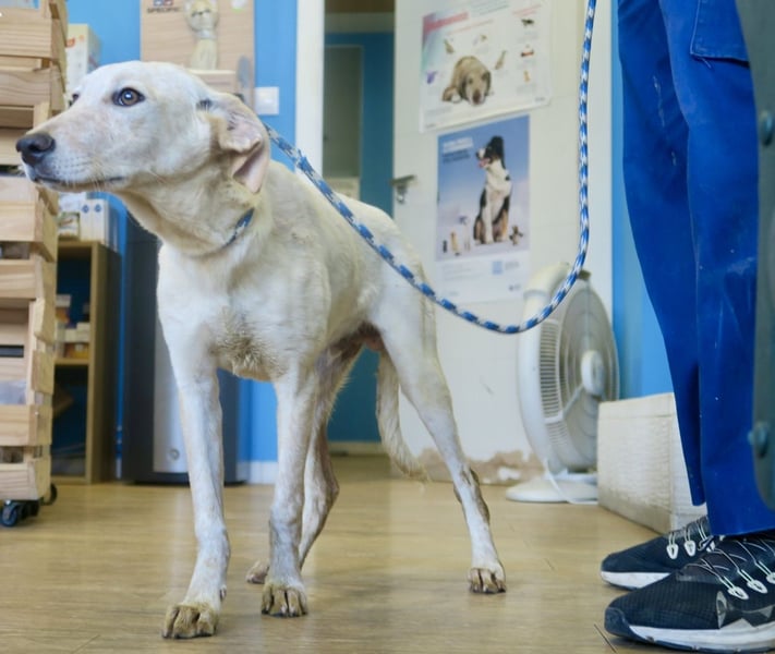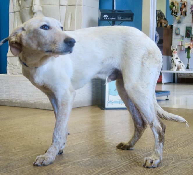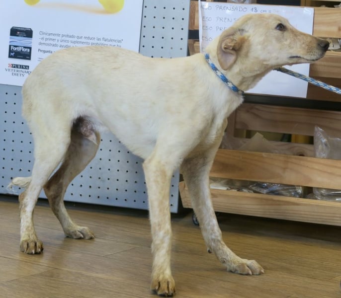 Jacinto (4214) Mischlings Bub, geboren am 09.09.2022, hat eine derzeitige Schulterhöhe von 42 cm und wiegt etwa 10.5 kg. Jacinto wird noch etwas wachsen und auch an Gewicht zulegen.