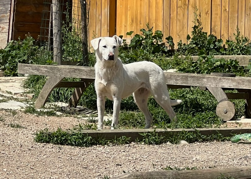 09/2025: Cometa war von Anfang ein eine eher schüchterne Hündin. Als Junghündin hat sie noch vorsichtig Leckerlies aus der Hand genommen. Leider hat sich Cometa weiterhin ängstlich entwickelt. Sie hält Abstand zu ihr unbekannten Personen, anfassbar ist sie nicht. Sie lebt in der Auffangstation in einem gemischten Rudel und ist gut verträglich mit Artgenossen. Wenn sie sich sicher fühlt liegt sie gerne in der Sonne, oder spielt auch mal ausgelassen mit den anderen Hunden. Sind Menschen in der Nähe, hält sie lieber Abstand.