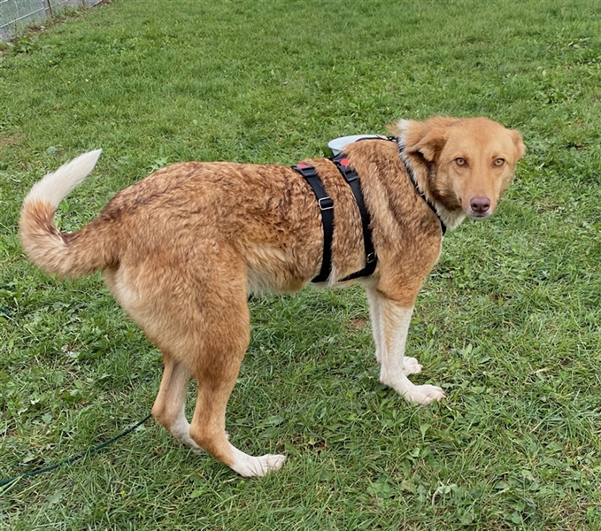 Andorra Mix Mädchen, geboren am 10.01.2022, hat derzeit eine Schulterhöhe von ca. 50 cm und wiegt ca. 16 kg.