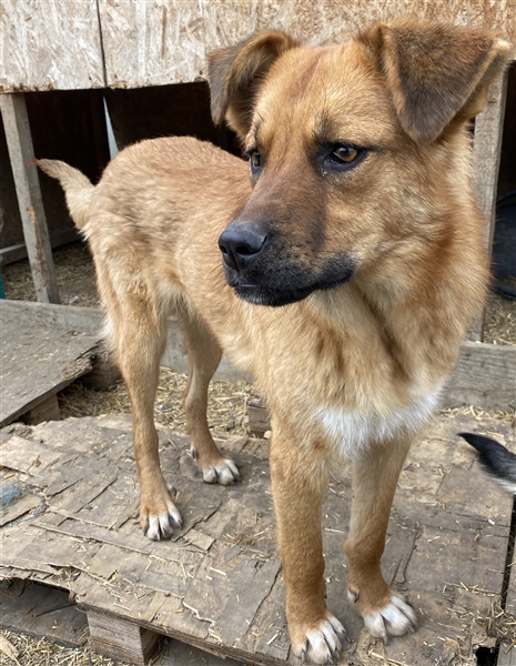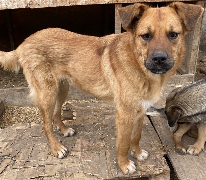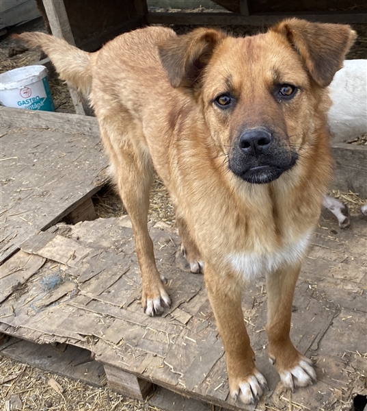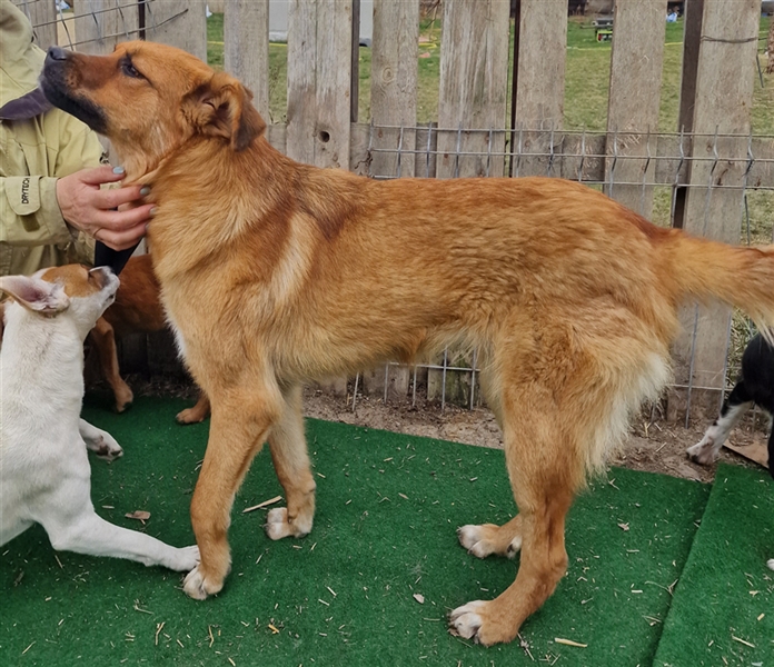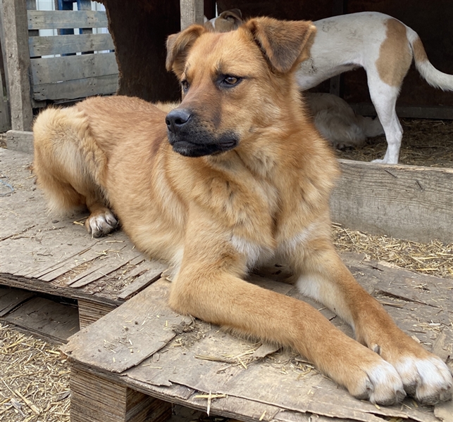 Hazel Mischlingsmädel, geboren am 02.01.2022, hat derzeit eine Schulterhöhe von ca. 55 cm und wiegt etwa 17 kg.