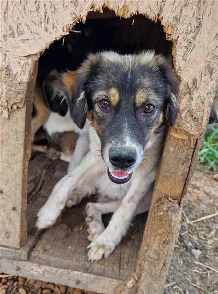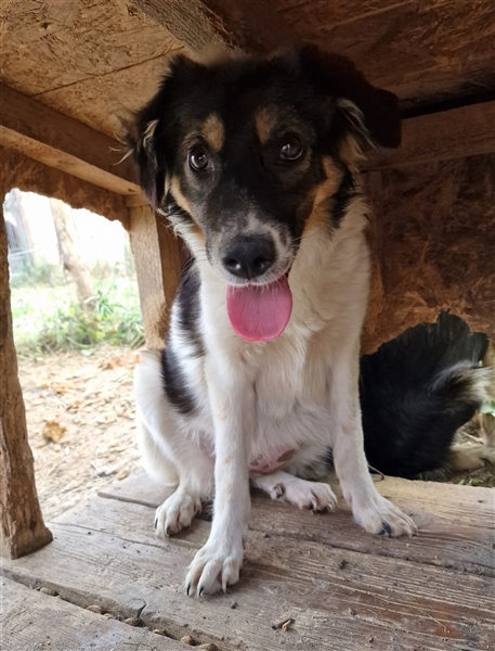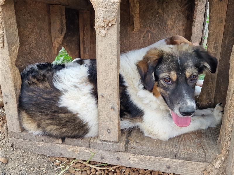 Gretchen, Mischlings-Mädchen, geboren ca Januar 2024, hat derzeit eine Schulterhöhe von ca. 45 cm und wiegt etwa 14 kg.