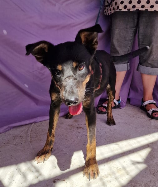 Melvin, Mischlings-Junge, geboren am 04.01.2024, hat derzeit eine Schulterhöhe von ca. 40-45 cm und wiegt ca. 10 kg. Wir schätzen, Melvin wird nicht mehr viel wachsen.