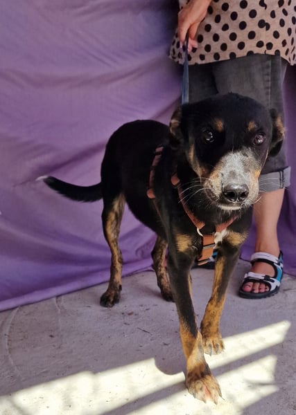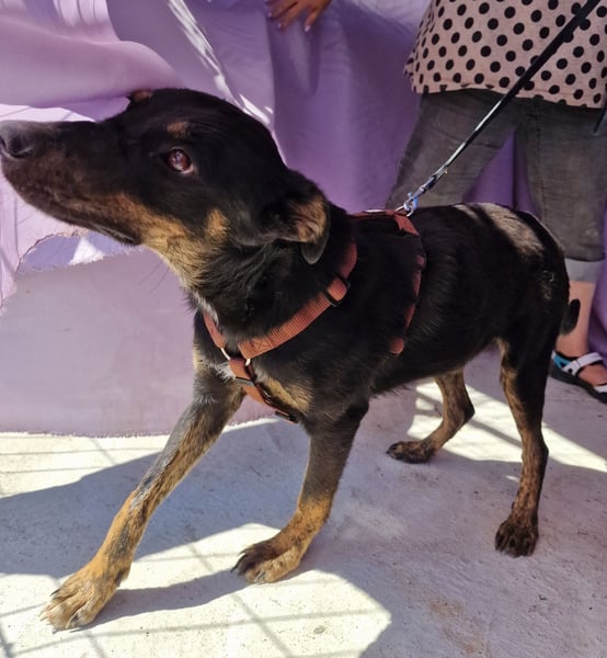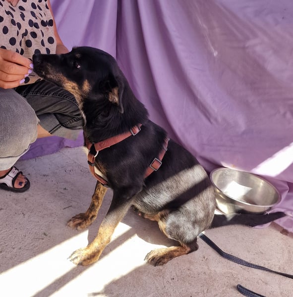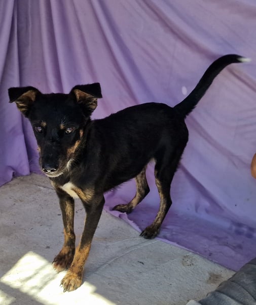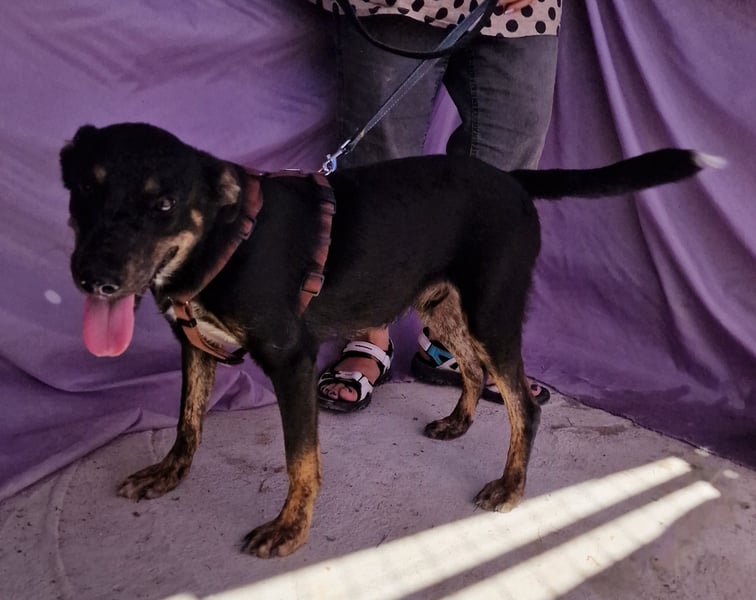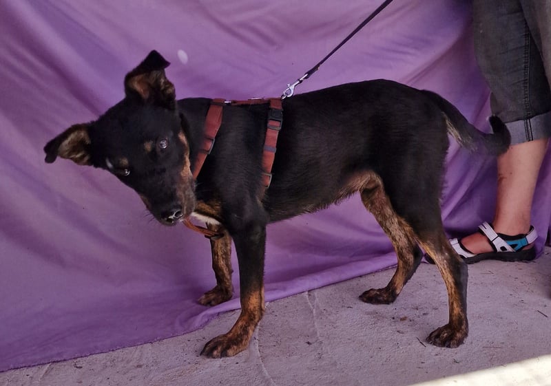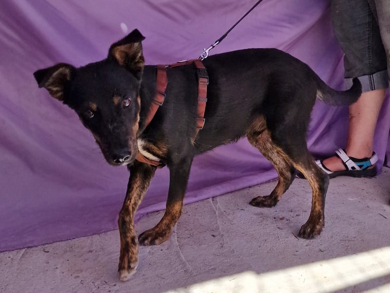 Melvin, Mischlings-Junge, geboren am 04.01.2024, hat derzeit eine Schulterhöhe von ca. 40-45 cm und wiegt ca. 10 kg. Wir schätzen, Melvin wird nicht mehr viel wachsen.