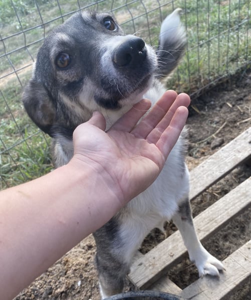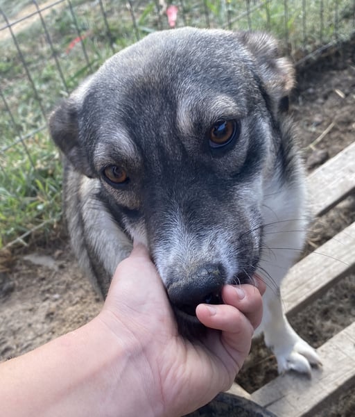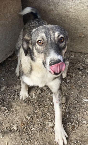 Gibbs, Mischlingsjunge, geboren am 14.06.2022, hat eine Schulterhöhe von ca. 45 cm und wiegt etwa 14 kg.