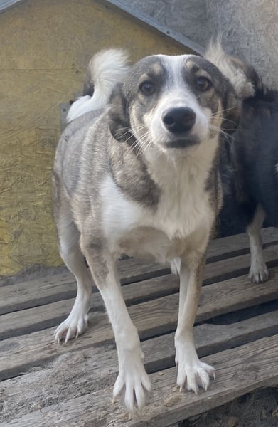 Inka, Mischlingsmädel, geboren am 09.09.2021, hat eine Schulterhöhe von ca. 45-50 cm und wiegt ca. 15 kg.