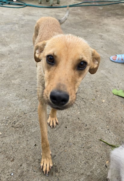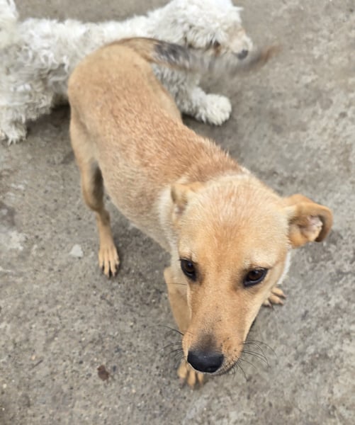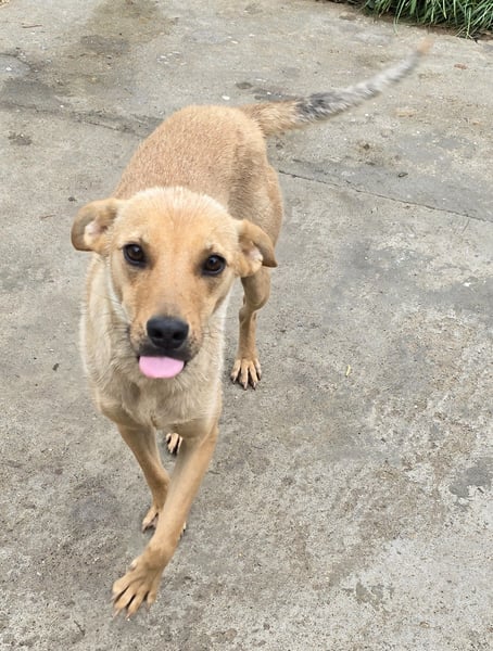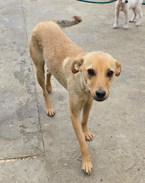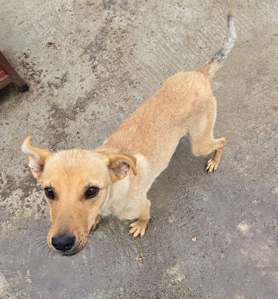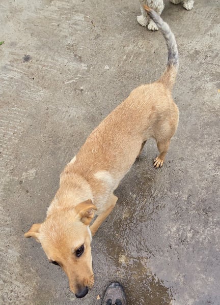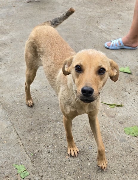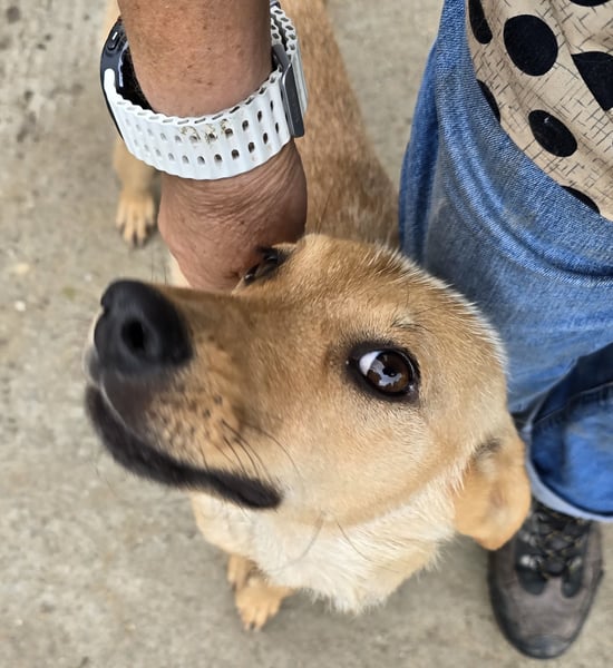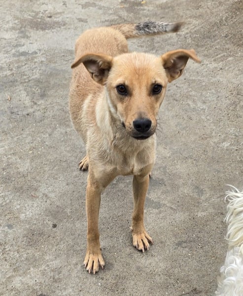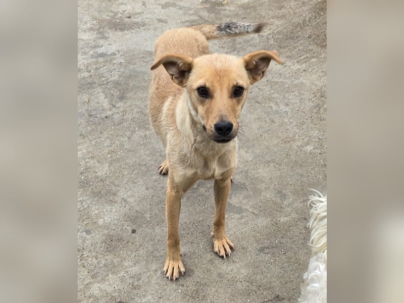 Suki, Mischlings-Mädchen, geboren am 07.12.2023, hat eine Schulterhöhe von ca. 45 cm und wiegt etwa 14 kg.