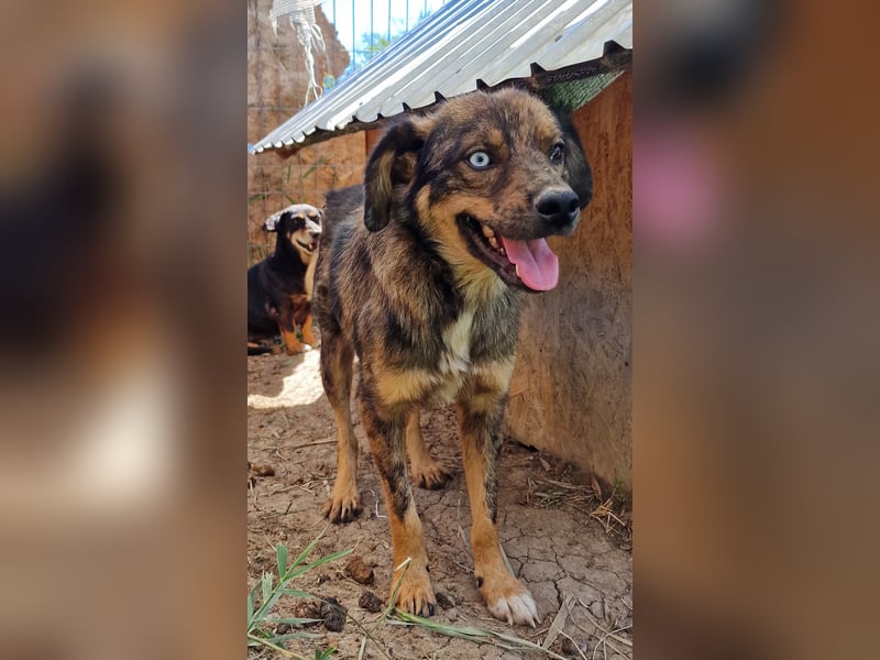 Azul, Mischlingsjunge, geboren am 13.01.2023, hat derzeit eine Schulterhöhe von ca. 45 cm und wiegt ca. 10 kg.