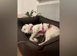 Unsere liebenswerte Seniorin macht dort bereits tolle Fortschritte und wird von Tag zu Tag mutiger. Anfangs zeigte sich Carla noch etwas scheu und zurückhaltend. Inzwischen nimmt sie immer häufiger Kontakt zu ihren Bezugspersonen auf und genießt kurze Streicheleinheiten. Schnell fiel auf, dass Carla vermutlich schwerhörig ist. Da sie sich aber prima an ihrer Bezugsperson orientiert, stellt dieses Handicap im Zusammenleben mit Carla kein Hindernis dar. Leckerlis nimmt sie gerne an – ein großer Vorteil für das zukünftige Zusammenleben. Das Zurechtrücken des Geschirrs sowie das Anlegen des Halsbandes lässt Carla geduldig über sich ergehen.