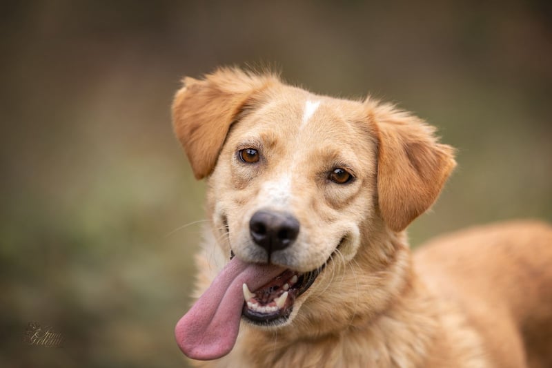 Jersey ist eine ganz besondere Hündin, die das Leben mit einem strahlenden Lächeln in den Augen zu betrachten scheint.