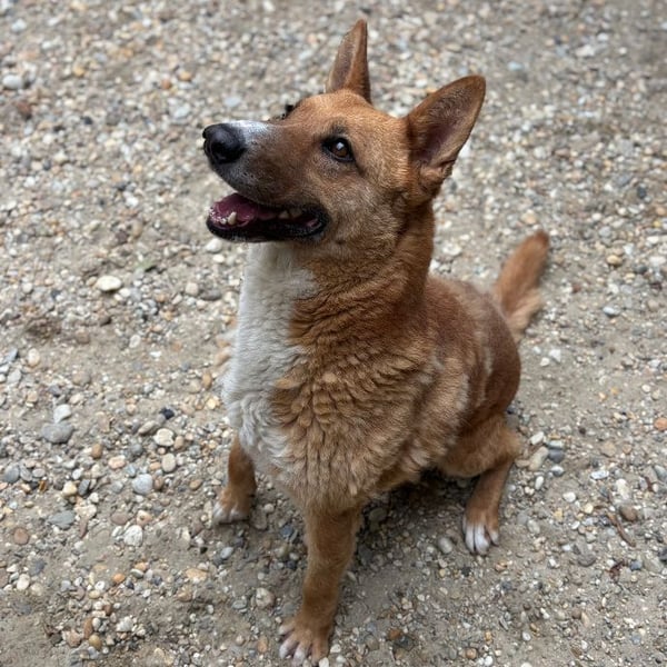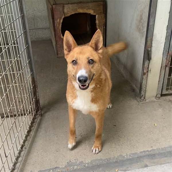 Ruta wurde auf der Straße eingefangen und kam in die egyeker Tötung. Hier verbrachte Ruta längere Zeit in der hintersten Ecke ihrer Hundehütte. Ganz langsam wagte Ruta sich etwas vorsichtig aus der Hütte in den Zwinger.