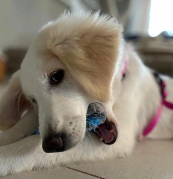 Kiki ist mittlerweile in Deutschland und hat schon einiges vom Leben im häuslichen Umfeld gelernt. Sie befindet sich aktuell in der Pubertät und reagiert dabei teils sehr sensibel bis schreckhaft auf Geräusche und neue Reize. Spaziergänge müssen behutsam aufgebaut werden, da schnelle Bewegungen von Menschen, Radfahrern oder anderen Hunden sie leicht stressen. Auch das Anlegen von Leine und Geschirr sollte weiterhin positiv belegt werden. Herdenschutzhundtypisch beginnt sie nun draußen, ihre Umgebung aufmerksam zu scannen und auch im Haus auf Geräusche zu reagieren. Dies äußert sich teils durch Schreckhaftigkeit und teils durch Bellen. Im Haus kann sie bereits Ruhephasen einlegen, benötigt aber weiterhin, auch teils hormonell bedingt, Unterstützung und Sicherheit. Trotz ihrer Sensibilität ist sie neugierig, lernwillig und zeigt Freude an Training und Spiel. Das Alleinbleiben muss Kiki noch lernen.