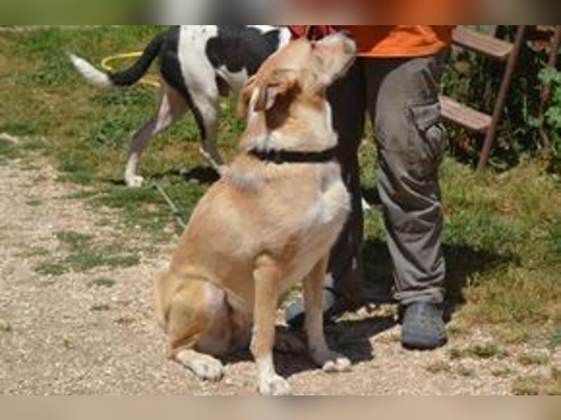 Mit Katzen vermutlich verträglich (diese Einschätzung treffen wir aufgrund unserer langjährigen Erfahrung mit insgesamt über 1000 Hunden auf unserem Hof. 99% aller Hunde akzeptieren unsere fünf Katzen sofort oder lassen sich durch wenige Zurechtweisungen dahingehend erziehen)