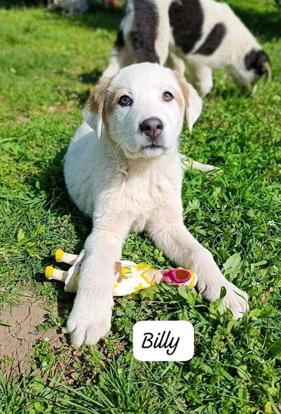 Billys Geschichte: Billy und seine Geschwister Berlin, Boubou, Bentley, Bobo und Bruno wurden in einem verlassenen Haus geboren, direkt neben einer vielbefahrenen Straße. Ihre Mama versuchte alles, die sechs Racker zu ernähren, doch dann wurde sie krank und konnte sich nicht mehr ausreichend kümmern. Tierschützer von Pawmates Resue Drama nahmen die Welpen deshalb mit, da sie alleine an diesem gefährlichen Ort sicherlich nicht lange überlebt hätten. Nach dem obligatorischen Tierarztbesuch, wo sie die ersten Impfungen und Parasitenschutz bekamen, wurden sie in einem umzäunten sicheren Garten untergebracht. Die sechs Babys stehen noch ganz am Anfang ihres Lebens. Sie entdecken ihre Umgebung und sind, typisch Hundekinder, verspielt und sehr neugierig.