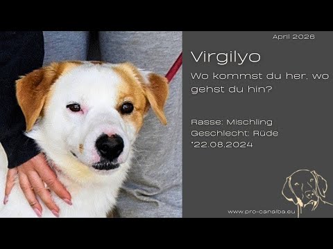 Das ist alles, was ich sagen kann: mein Name ist Virgilyo - er klingt und schwingt sehr schön melodisch - könnte etwas mit Unschuld zu tun haben... genau wie ich! Meine Größe ist angenehmes Mittelmaß. Richtig Hund und doch praktisch für die Unternehmungen des Alltags. Ich würde ganz sicher toll in einem Körbchen aussehen, die Pfoten adrett hingestreckt und mit meinem zärtlichen Blick. Wie Ihr sehen könnt, bin ich ein fescher hübscher Bub, aber keiner von den Arroganten, sondern ein ganz Lieber, Feiner, Kuscheliger. Wenn ich doch nur einmal in meinem Leben noch etwas Liebevolles erleben dürfte! Ich meine, dass es da irgendwie, irgendwo bei irgendwem mehr geben muss, schließlich war mein erstes Lebensjahr in Freiheit, vielleicht sogar in einer Menschenfamilie.