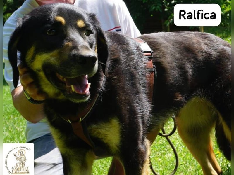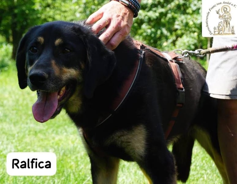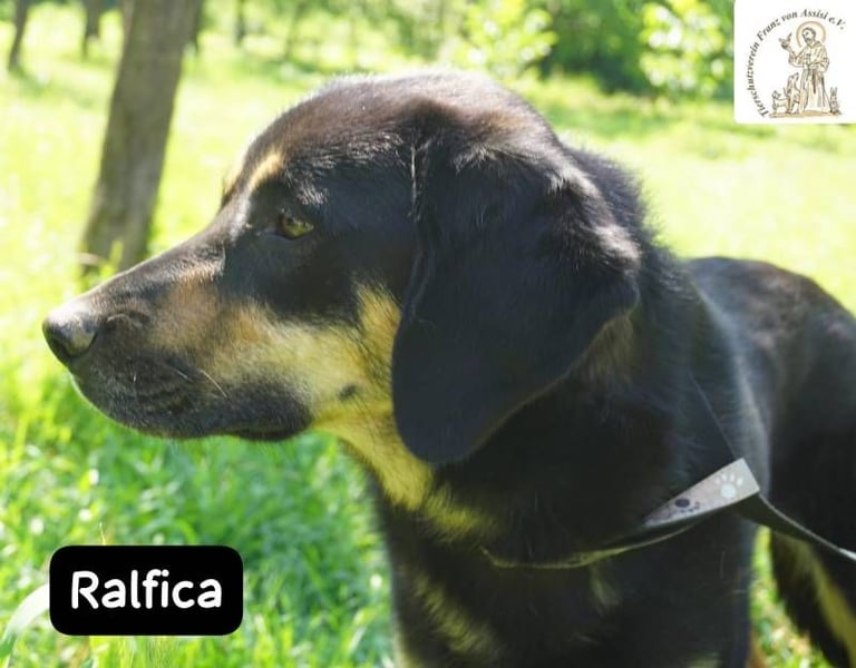 Ralfica ist eine mittelgroße Hündin mit wunderschöner schwarz-brauner Zeichnung. Sie hat ein offenes Herz für Menschen, versteht sich gut mit Artgenossen und steckt voller Neugier auf das, was da draußen noch alles auf sie wartet. Man sieht ihr an: sie bringt den Körperbau und die Energie mit, um einmal eine tolle Begleiterin für aktive Menschen zu werden – sei es bei Spaziergängen, Wanderungen oder beim Spielen.