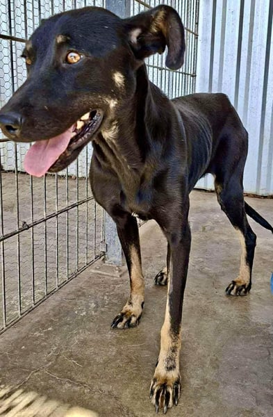 Tora ist etwa 2 Jahre alt, ca. 54 cm groß und wiegt aktuell nur 18,5 kg. Sie wurde einfach abgeschoben und sollte getötet werden. Dank der Rettung durch die TierEngel-Familie ist sie nun in unserem Shelter nahe Bukarest in Sicherheit.