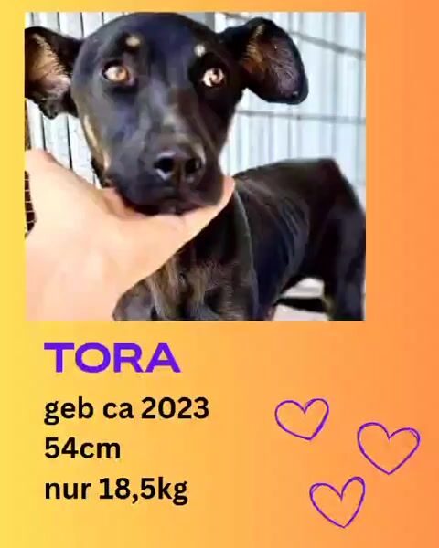 Tora ist eine liebevolle, sanfte und unterwürfige Hündin. Mit anderen Hunden ist sie verträglich, rücksichtsvoll und geht jedem Streit aus dem Weg. Mit einfühlsamen Menschen an ihrer Seite wird sie aufblühen und zeigen, welch treue Begleiterin sie sein kann.