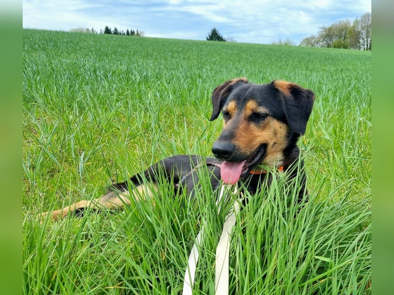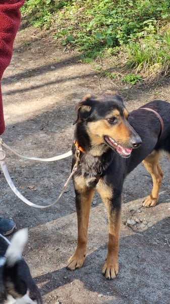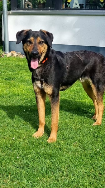 Genau wie im Shelter zeigt sich der Vierbeiner auch in seinem Übergangszuhause freundlich, offen, neugierig und intelligent. Seine gute Laune ist ansteckend und er verteilt auch gerne mal ein Küsschen.