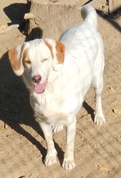 Ein schneeweißes Fellkleid und braune Flecken auf den Ohren, sowie ein gleichfarbig umrahmtes Auge machen Stelle zu einer bildhübschen Hundedame. Ihr lieber Blick unterstreicht ihr zauberhaftes Wesen. Sie ist freundlich, benötigt jedoch zu Beginn etwas Zeit, um Vertrauen zu fassen. Dann überzeugt sie mit ihrer fröhlichen und aufgeschlossenen Art. Stelle lebt mit vielen weiteren Hunden zusammen, mit denen sie sich gut versteht. Da aufgrund der Vielzahl der zu versorgenden Tiere die Zeit knapp ist, konnte sie noch nicht allzu viel kennen lernen. Daher wünschen wir uns für Stelle liebevolle Menschen, die ihr mit viel Geduld ihr neues Leben und Umfeld zeigen und sie behutsam eingewöhnen. Bestimmt kann auch der Besuch einer guten Hundeschule helfen, denn etwas Nachholbedarf in Sachen Hundeeinmaleins besteht ebenfalls. In jedem Fall wird sie sich über viel Aufmerksamkeit und Zuwendung sicher freuen und die schönen Seiten des Hundelebens genießen. Wir finden, dass Stelle das Potenzial mitbringt, eine prima Begleiterin zu werden. Wenn Sie das auch in der hübschen Hundedame sehen, freuen wir uns auf Ihre Anfrage!