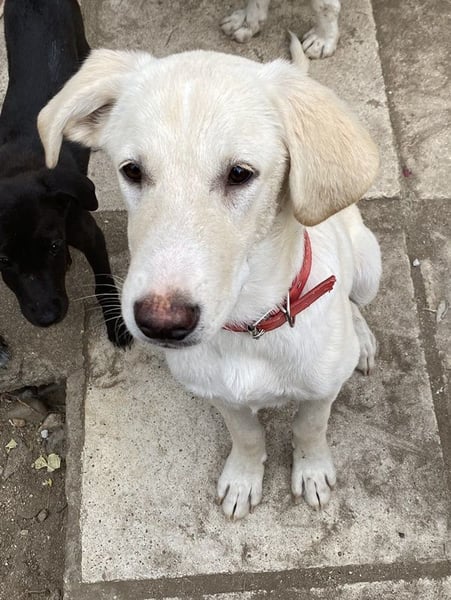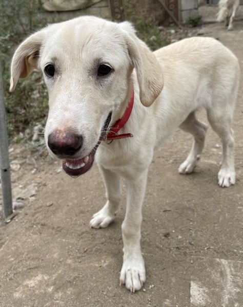 Littlefoot, geb. ca. 04/2024, lebt in GRIECHENLAND, auf einem Gelände, auf dem die Hunde notdürftig versorgt werden