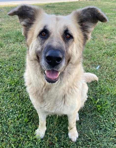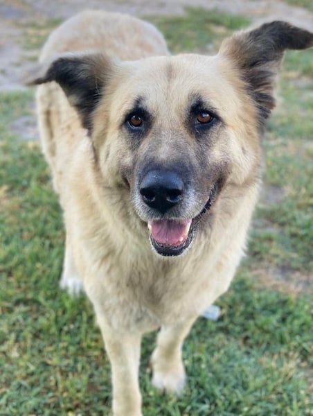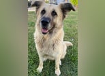 Pinja ist eine große Hündin mit einem dichten, hellen Fellkleid. Besonders niedlich sind ihre abstehenden Ohren, die wie ihre Schnauze etwas dunkler gefärbt sind. Ihre warmen braunen Augen unterstreichen ihr bezauberndes Wesen. Pinja ist eine absolut liebe Seele, die sich sehr freundlich im Umgang mit Groß und Klein zeigt. Auch Katzen hat sie bereits kennengelernt und auch mit ihren Artgenossen kommt sie gut aus. Wir finden, dass das solide Voraussetzungen für ein Leben als