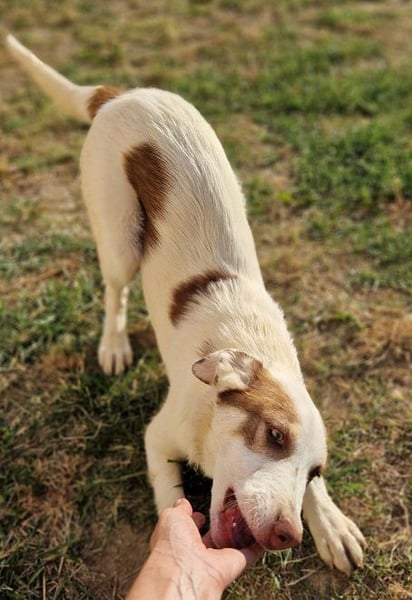 20.04.2024: Alina ist am Anfang etwas schüchtern. Sie ist ruhig und sanft. Sie mag Menschen und bittet um Zuneigung, auf eine süße, schüchterne Art. Im Rudel ist sie diejenige, die gemobbt wird, vor allem beim Essen.