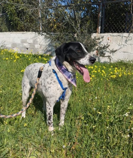 Ashley´s Geschichte: Ashley, das hübsche Pointer-Mix-Mädchen, ist ein wahres Energiebündel. Als Evelin sie in den Hügeln in der Nähe ihres Wohnortes entdeckte, war ihr freundliches Wesen sofort spürbar. Es war klar, dass sie viel Liebe und Aufmerksamkeit braucht. Mit ihrem aktiven Temperament zieht sie beim Leinengehen ordentlich an, was es manchmal etwas herausfordernd macht. Doch im Auto strahlt sie vor Freude, als wäre jede Fahrt ein kleines Abenteuer. Abgesehen von ihrer Lebhaftigkeit hat Ashley keine Verhaltensauffälligkeiten und bringt mit ihrem menschenbezogenen Charme jeden zum Lächeln!(23.03.2025)