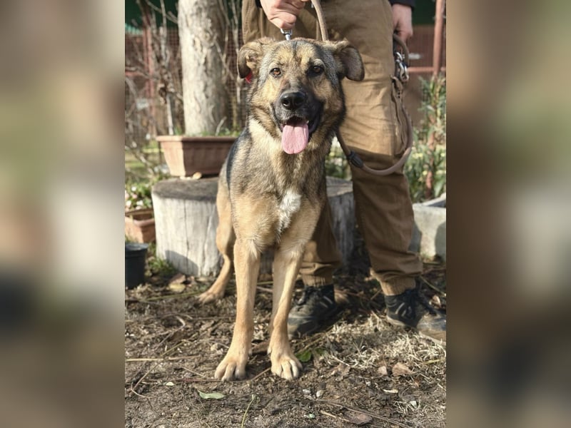 Die junge Schäfer-Mix-Hündin ist eine wunderschöne Erscheinung mit einem besonders sanften Blick und einer feinfühligen, liebevollen Art. Anfangs begegnet sie neuen Situationen noch etwas vorsichtig, doch mit Geduld und Einfühlungsvermögen fasst sie schnell Vertrauen und zeigt dann ihre anhängliche und treue Seite. Hat sie sich einmal eingelebt, genießt sie die Nähe zu ihren Menschen sehr und sucht aktiv den Kontakt.