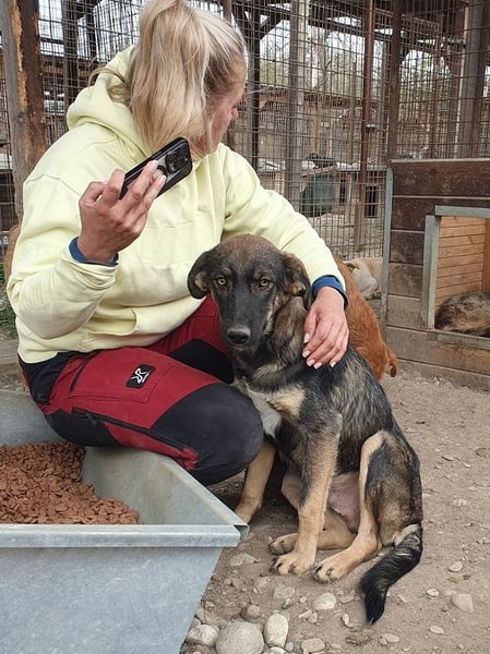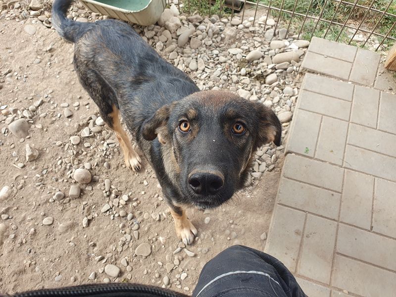 Matteo ist ein wunderschöner, schäfifarbener Rüde mit leuchtend braunen Augen, die uns sofort in ihren Bann gezogen haben. Denn Matteo ist jung, aktiv und voller Lebensfreude – ein richtig süßer Kerl, der sich über unseren Besuch riesig gefreut hat. Von der ersten Sekunde an zeigte er sich unglaublich aufgeschlossen. Anfangs war er vor Freude etwas aufgeregt, doch beim Streicheln kam er wunderbar zur Ruhe und zeigte seine sanfte, liebevolle Seite. Er ließ sich von jedem ausgiebig kraulen, schmiegte sich eng an uns und legte sich vertrauensvoll auf den Rücken, um noch ein paar extra Streicheleinheiten zu bekommen. Dabei verteilte er zarte Küsschen und genoss einfach die paar Minuten Aufmerksamkeit. Damit dies nicht wieder für eine halbe Ewigkeit die letzten Streicheleinheiten waren, sollte Matteo ganz schnell ausreisen. Am liebsten würde er zu Menschen, die seine Zuneigung zu schätzen wissen, gerne aktiv sind und ihm zeigen, wie schön das Leben außerhalb des Zwingers sein kann. Und die ihm natürlich auch noch das kleine Hunde 1×1 beibringen, denn Matteo kennt wahrscheinlich noch nicht viel aus unserer “normalen” Welt.