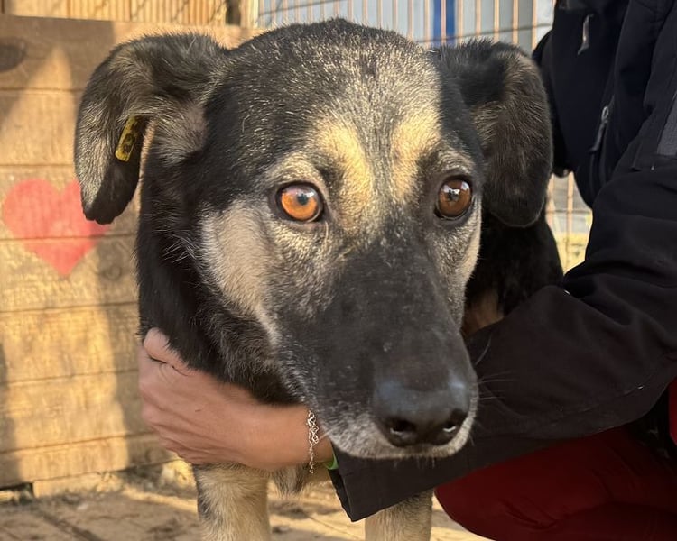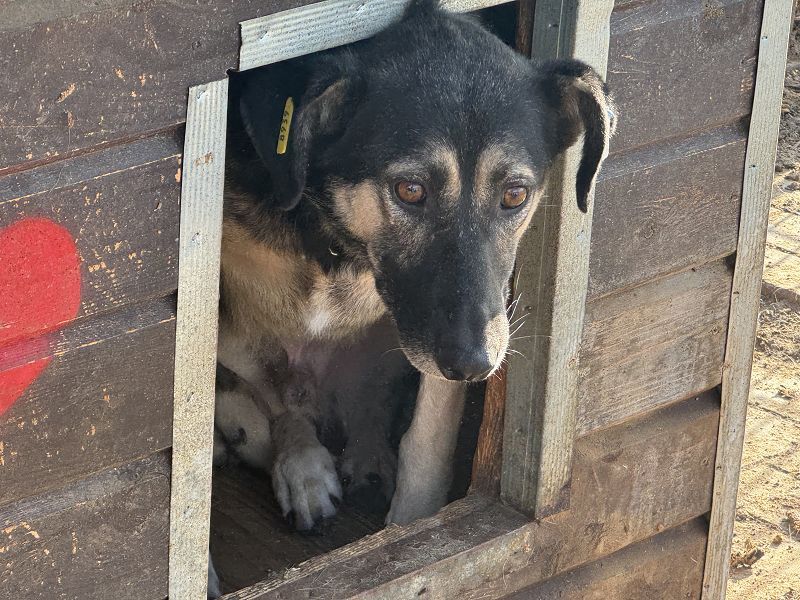 Dem armen Kauri steht die Verzweiflung ins Gesicht geschrieben. Viel zu lange sitzt er schon unter den widrigsten Bedingungen im Tierheim und verbringt wahrscheinlich bald schon seinen dritten Winter in der klirrenden Kälte. Das er es überhaupt bis jetzt geschafft hat, ist ein Wunder, denn Kauri wurde in der Vergangenheit schon oft gebissen. Seine Wunden sind verheilt, jedoch bricht es einem das Herz zu sehen, wie er keinen neuen Lebensmut schöpfen kann. Durch sein schwarzes Fell und den braunen Pfoten, hat er kaum eine Chance gesehen zu werden. Dabei hätte er so sehr verdient, jemanden zu finden, der ihm hilft seine geschundene Seele heilen zu lassen. Kauri ist von dem Lärm der tausenden anderen Hunden sehr gestresst und lag zitternd in einer Hütte. Wir konnten ihn problemlos rausheben und ihm wenigstens für einen kurzen Moment Sicherheit schenken und ihn streicheln.