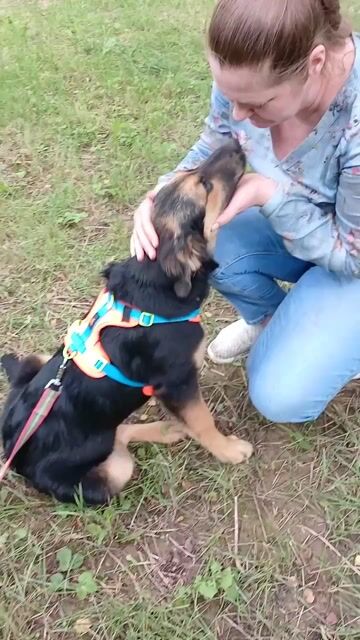 ALMA ist neugierig, lieb, aktiv und menschenbezogen. Mit allen Hunden kommt sie gut klar. Katzen kennt sie noch nicht. Sie lernt gerade an der Leine zu laufen und die Welt kennenzulernen. Zu den Kindern ist sie lieb. Männer mag Alma sehr. Schlau und lernfähig. Im Auto fahren kann sie ohne Probleme.