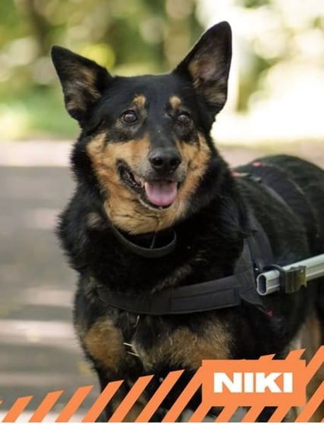 Leider ist ihr fehlendes Beinchen nicht "fachgerecht" amputiert worden, sondern Niki hat es während ihrer Zeit auf der Straße verloren. Dies hat zu Vernarbungen geführt und verursacht bei ihr häufiger Schmerzen. Dies ist auch die Ursache, wieso Niki (im Gegensatz zu ihrer Pflegeschwester Jessy) ihre Prothese nur ungern trägt. Ihre Pflegemama versucht dennoch Niki behutsam an ihrem Hilfsmittel zu gewöhnen. Aber so kommt Niki wunderbar zurecht, bei längeren Strecken nutzt sie gern einen Rollstuhl, um ihre Wirbelsäule zu schonen. Bei ihrer Pflegemama bekommt sie regelmäßig Physiotherapie.