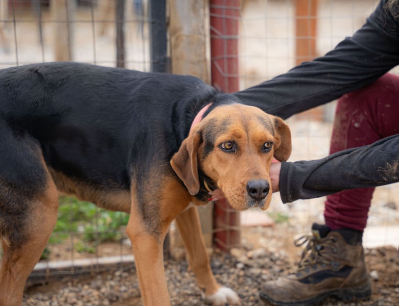 Sie ist ein Griffon-Jagdhund, ca. 2019–2020 geboren, und lebt seit 2021 in der Auffangstation von Tierschützerin Chrisa.