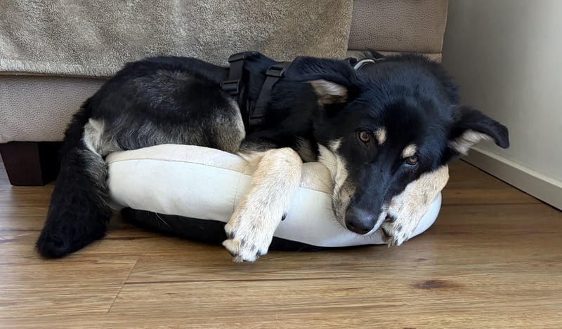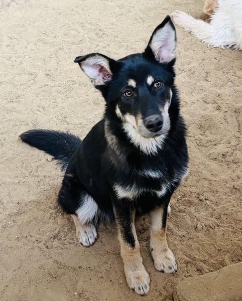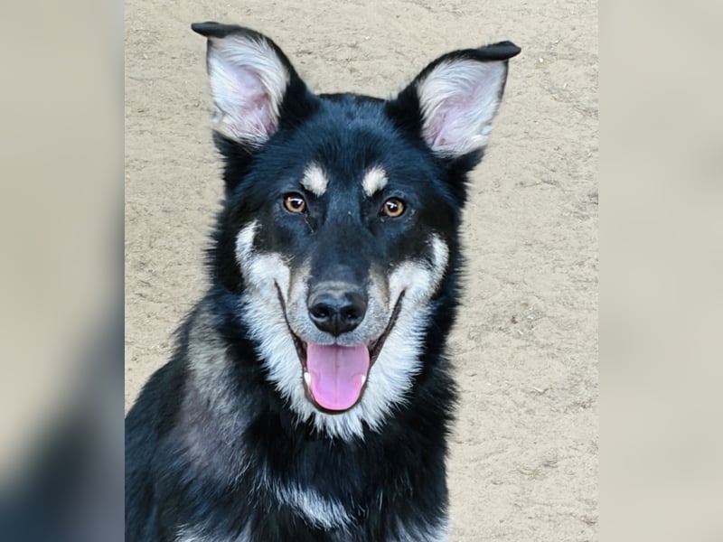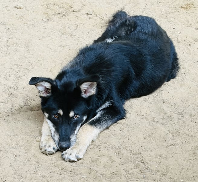 Maylo ist ein junger, fröhlicher Hund, geboren am 01.09.2025, 45 cm groß und 17 kg, der mit seiner offenen Art sofort begeistert. Maylo ist eine absolute Wasserratte.