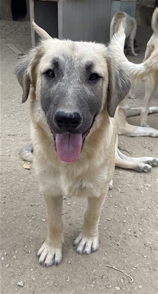 Klößchen hat sich mittlerweile von einem plüschigen, kleinen Welpen zu einem stattlichen jungen Rüden entwickelt. Er hat ein hübsches, überwiegend beigefarbenes Fellkleid. Was sich davon abhebt, sind sein fast vollständig schwarzes Gesicht und seine teilweise schwarzen Ohren. Mit seinem treuen Blick aus den dunklen Knopfaugen verzaubert er jeden um ihn herum. Und auch sein Wesen ist wundervoll: Klößchen wird als freundlicher und lieber Hund beschrieben. Er mag nicht nur die menschliche Nähe, sondern auch die seiner Artgenossen.