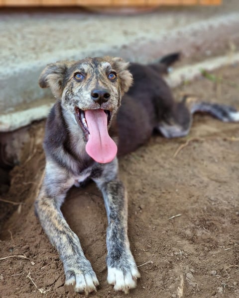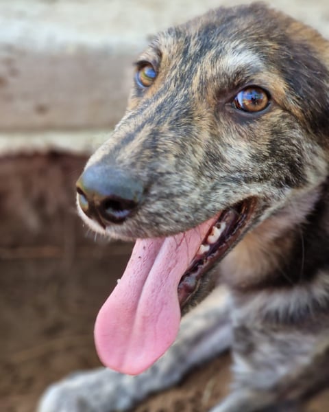 …ich bin der Frechdachs Anjo und wurde Ende Februar 2022 mit meinen 4 Geschwister und unsere Mama Amara von den „Paws-Mädels“ aus Unirea gerettet und bekamen eine Chance zu leben.