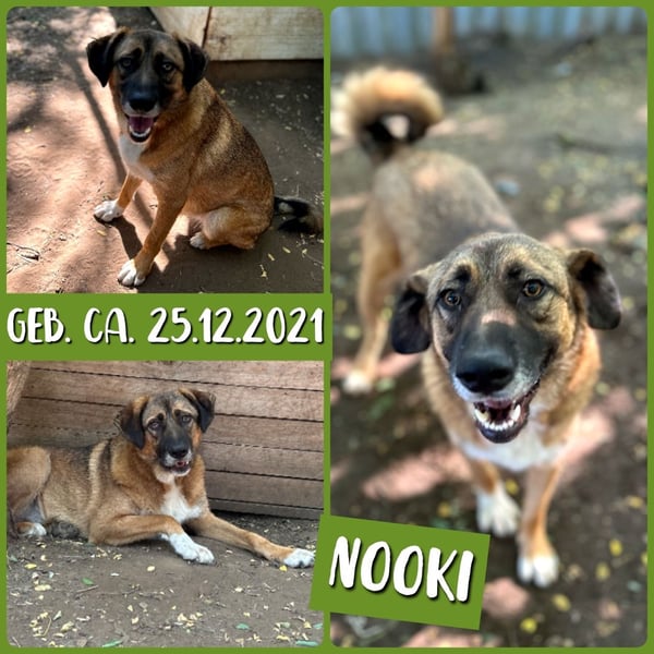 Was so ein bisschen Sicherheit doch ausmachen kann. Er ist ein sehr freundlicher und aktiver Bursche, der gerne mit seinen Kumpels spielt. Auf der anderen Seite sucht er die Nähe zu den Menschen und schaut sich sehr interessiert an, was diese so treiben. Mit seinem braun-weißen Fell ist er ein echter Hingucker. Wir vermuten, dass in Nooki ein paar Gene von einem Herdenschutzhund stecken, das sollte die zukünftige Familie bitte beachten. Er wird sicherlich mit einer klaren, konsequenten und liebevollen Erziehung sehr schnell, mit dir gemeinsam, alles Wichtige lernen und ein absolut toller Lebensbegleiter werden.