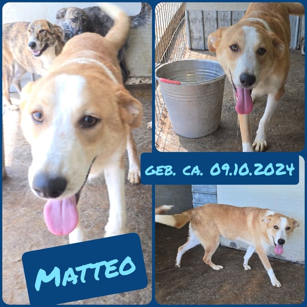 Er ist der Offenste aus seinem Wurf – ein junger Bursche, der die Welt entdecken möchte, auch wenn sie ihm manchmal noch ein bisschen unheimlich erscheint. Im ersten Moment zeigt er sich schüchtern und unsicher, doch sobald Matteo merkt, dass man ihm nur Gutes möchte, taut er auf wie die Sonne nach einem Regentag. ☀