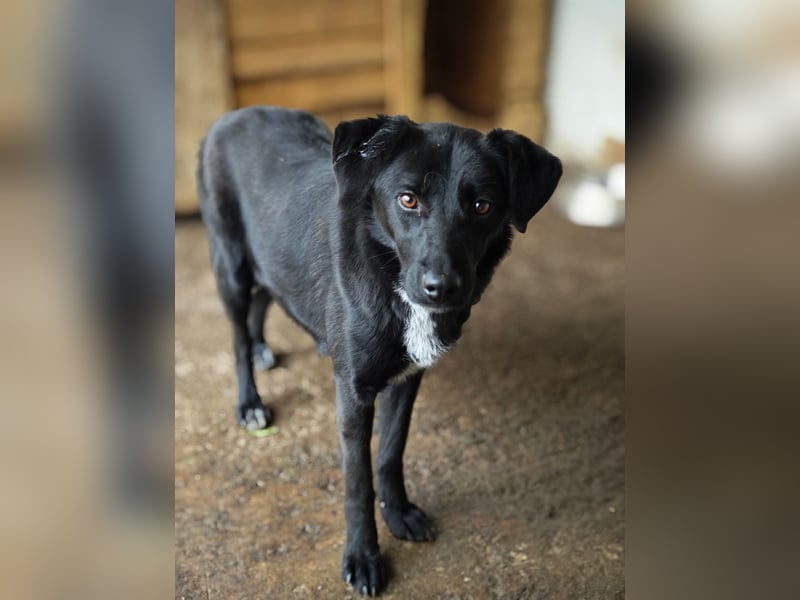 Optisch ist sie ein echter Schatz: eine wunderschöne schwarze Hündin mit einem weißen Latz, der ihre Eleganz noch hervorhebt. Und dann dieser Blick – warm, weich und direkt in die Seele gehend. Wer Isleen einmal anschaut, spürt sofort, was für ein liebevolles Wesen in ihr steckt.