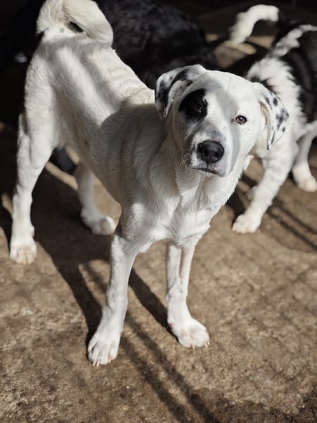 Mit seinen Artgenossen ist er altersentsprechend verspielt und sozial. Er genießt das Zusammensein mit den anderen Welpen und zeigt sich freundlich und unkompliziert.