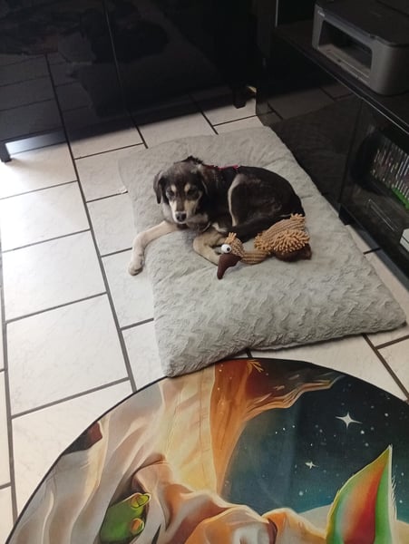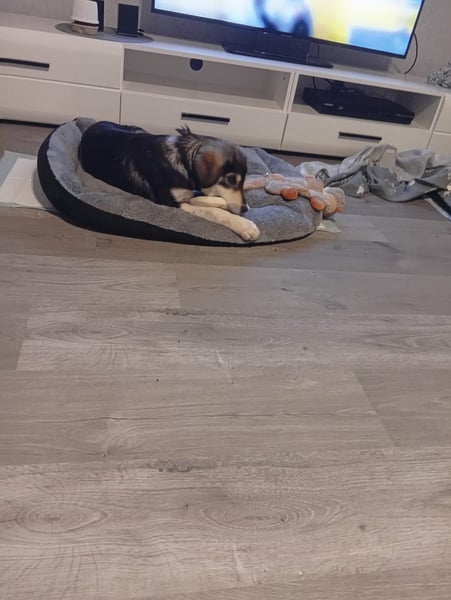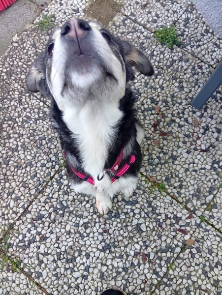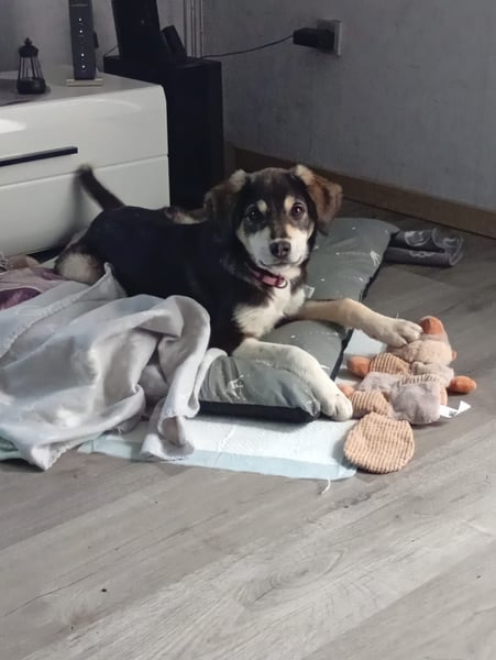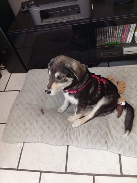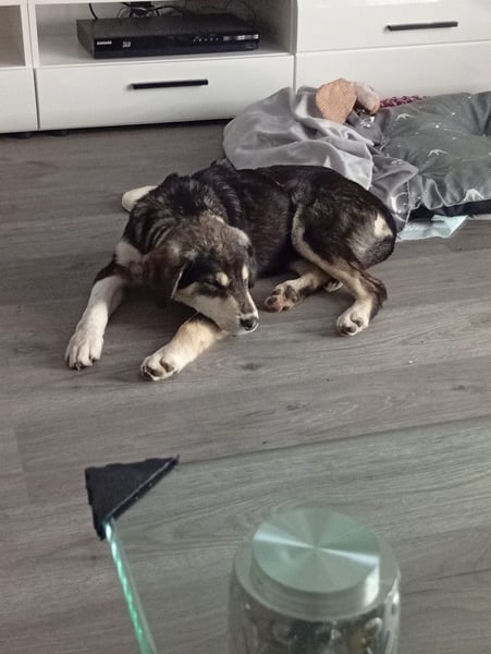 An der Leine läuft Maxi schon richtig gut und zeigt sich draußen interessiert und neugierig. Zuhause ist sie erstaunlich brav: Das Sofa lässt sie völlig in Ruhe und legt sich ganz selbstverständlich auf ihre Decke oder ihr Kissen. Wenn sie Lust auf Streicheleinheiten hat, kommt sie von alleine vorbei – und wenn sie genug gekuschelt hat, zieht sie sich wieder zufrieden zurück.
