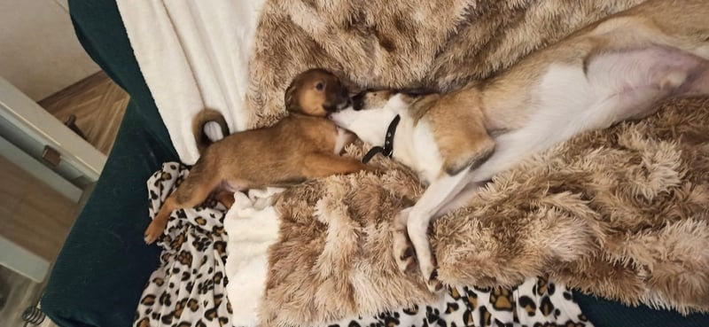Obwohl ich schon 4 Monate alt bin, verhalte ich mich wie ein deutlich jüngerer Hundebube. Deshalb suche ich noch viel Nestwärme und Kuscheleinheiten. Ich liebe es, abends bei dir zu liegen und zu kuscheln.