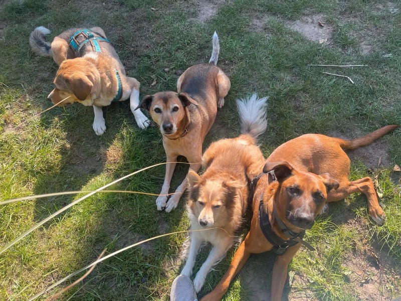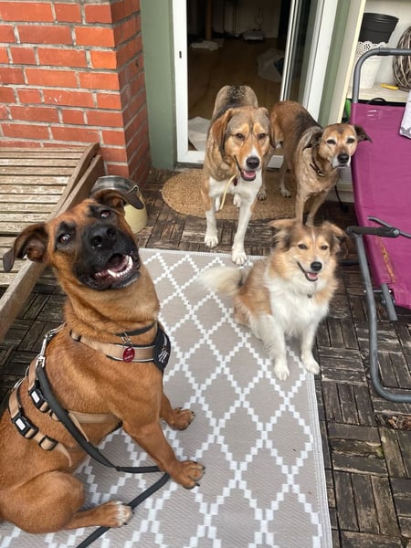 Auf seiner Pflegestelle lebt er mit 3 weiteren Hunden zusammen und versteht es gut, sich im Rudel einzufügen.